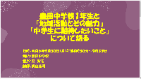 豊田中学校1年生と「地域活動とその魅力」「中学生に期待したいこと」について語る